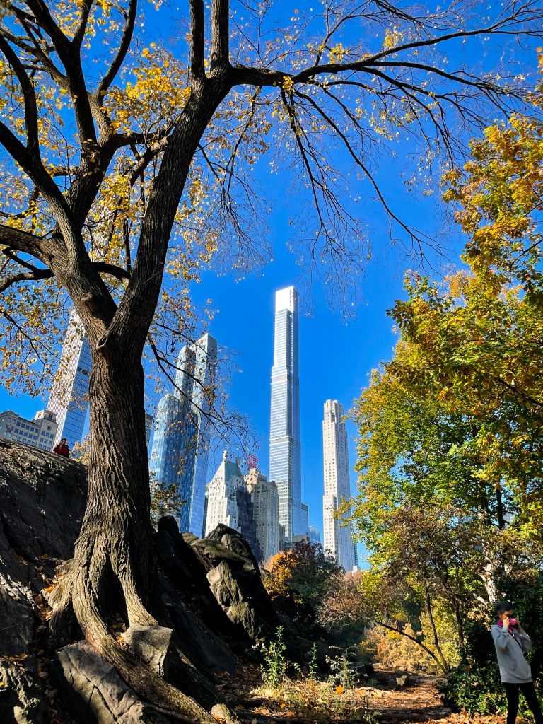 I’ve only been to New York once, so I can’t really say what the best time of year to visit is, but I can’t imagine it being better than Autumn – the first week of November, to be exact. I was told it was slightly warmer than usual, but you’d still only need a jacket rather than a winter coat. With the clear blue skies and sunshine, it was so warm we sometimes went out without jackets at all. We saw both Halloween decorations that were still up on people’s houses and shops all prepared for Christmas. There were even Christmas markets and an ice rink. While it wasn’t the magical feel of a snowy festive season in New York, we still caught a glimpse of it without the freezing temperatures and loads of people. Our walk through Central Park while the leaves changed colours felt like something out of a film. Central Park became one of our favourite spots as we watched people in boats on the lake, dogs playing in the leaves, and admired the stunning bridges.